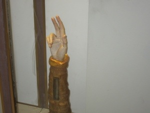 Peggy could not stand to look to the degree that I was willing. There were at least 20 of these Busts with parts exposed to the close observer. Normally, the busts and arms were displayed in a major prize showcase near the alter and only taken out for display on the saint’s day. It was great for them to bring the collection down off the wall. Here are a few examples.