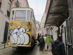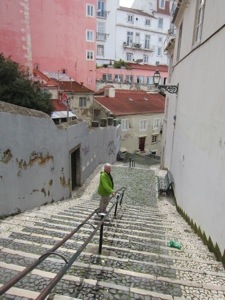 We rode the strange little funicular up one of hills. I know, we cheated. Part of the Lisbon deal