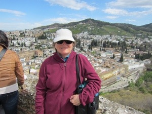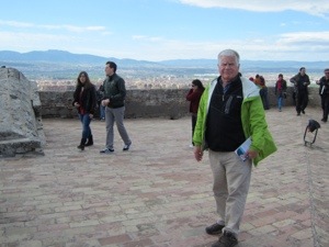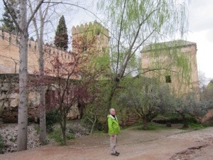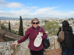 Of course there were stairs and towers to climb. The Alcazaba is the fort part of palace complex it has great views and scary walls to lean over. Peggy was happy.