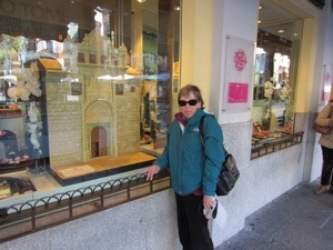 We are entering the city through the Bisagra Gate. You get the picture. We then proceeded to climb the hill to Zocodover Plaza where the city temporarily levels out. Peggy finally got her marzipan but I refused to buy the marzipan recreation of a museum.