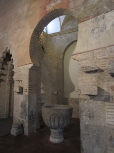 In a tiny corner of my memory is the story of the Visigothic invasion of Spain. Little did I realize that these guys were conquered by the Moors but never left. With Papal permission, they still perform the Visigoth mass in the Cathedral. Also surviving as a museum is a church with Visigoth roots. It has been modified by Muslims and later Catholics but its origins are clear. It also had a thousand year old bell tower. Peggy was happy.