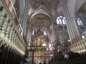 The church not only reflects Spanish Christian heritage, it manages to illustrate the last 800 years or so of Spanish history. The high altar is massive and covered in gold. I found the choir far more interesting.