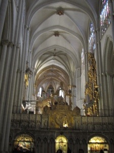 The exterior, jammed into the crowded area of medieval Toledo is tough to grasp. It has the requisite gothic statuary and spires. The magic is inside.