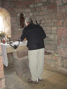 Trail was up and over and then lots of down. Encountered pretty streams and bridges. The highlight was a small chapel perched on a rock. Amazing that they leave old stuff unattended. This place was built in the 12th Century for St. James.check out the remains of the fortification above the chapel.