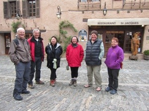 The town is in a time warp. The economy is based upon French tourism sprinkled with occasional foreigners including a rare American couple. The restaurants, souvenir shops and boutiques make up the shopping. I have no idea where they buy food. We are back in the Abbey for the night and planning a nap before visiting the treasury with the relics.