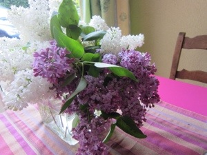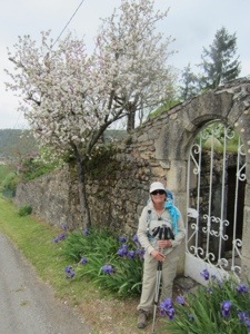 There was rain forecast for today and we are nearing a stretch with few facilities. We decided on a 12 km walk to Cajarc and are staying in guest room at a private home. These are the French equivalent of a B&B. Got there by noon and had a big lunch with a pitcher of wine at a restaurant. Never a good idea when walking. Peggy took a picture of some lilacs that grace the table that I am working at. She is napping. It is raining but we are inside and warm.