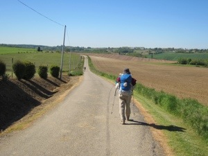 Since we are in Gascony, a huge salad with plenty of garlic in everything, was the order of the day. Also had chicken instead of duck. Geese are really in trouble in this region. We have also achieved a very minor celebrity status. People want to take pictures of the old Americans with backpacks. Not sure why but we accommodate them. Maybe it is because we just passed the 500 km mark and are more than 2/3rds of the way through France.
