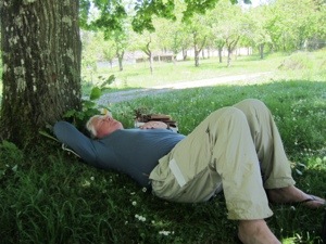 OK, the lusty part. Everyone remembers the song from Camelot, The Lusty Month of May. With warm weather and sunny skies, the animal world was making hay or offspring. Every bush and tree is full of songbirds. We walked by a large pond or lake with some of the loudest frogs that I have ever heard. Their legs must be the size to fill a French fry pan. We did not see them jumping around in the bright sunshine. Their minds were on other things. Even saw fish being frisky in the shallows. The cows even seemed to be happier.