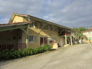 Because of the accommodations squeeze we hiked only 10 Kms today. The weather was cool and cloudy. Perfect hiking weather. The usual mud struggles but we have our sticks. Arrived in Arzacq-Arraziguet by eleven and began to fret since we had no reservation. The city Gite is huge and there was no issue but it is always a relief to find shelter.