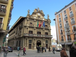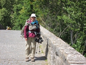 The hills came and went. The rain never came and we could undo our parkas. Many ancient pilgrim bridges and soon we were in the outskirts of Pamploma, a city of 200,000. The next largest city we have seen was Le Puy with 27,000 souls. We had been warned to prepare ourselves for a big city hike. We were concerned about pickpockets and crosswalks. Our magic batons warded off all of those problems.