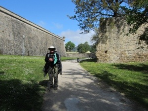 Replenished our supplies of baby aspirin and glucosamine for the rest of the trip at a handy pharmacy where they patiently went through their inventory to find the right dosage. With drugs in hand we continued to walk the streets. Crossed a number of bridges before reaching the 17th Century fortifications that were built when Navarre and Pamploma were under French control. Impressive stonework and a working drawbridge.