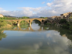 Nice lunch at a bar in Lorca. Ran into several people we knew including the sausage man from France. Walked on to Villatuerta across some open country and through the modern town but crossed our last bridge for the day, almost.