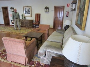 Stopped at the first bar and got Peggy a Limon and a bathroom. Found our humble abode for the night, the Parador Santo Domingo. The pictures give you an idea of the joint. Remember we were in an Albergue last night. Now it was a nice place. Just not in this league. Much like the municipal Albergue that we heard about from two people. An Irish couple checked in there and checked out a few minutes later. Another pilgrim who shared our table at dinner liked it. She was in bunk number 79 out of 140. They also had two toilets and two showers to share. This same pilgrim lady said she liked walking 12 to 14 hours a day to go 30-40 Kms. By contrast five to six hours gets us 20-24 Kms which is fine. Each to his own Camino.