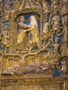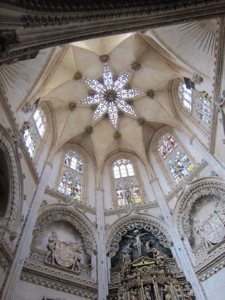 After a fortifying beer and pizza, we ventured into Christianity’s answer to the Alhambra. The Burgos Cathedral, to paraphrase Huell Howser, is amazing! We have been to many famous cathedrals and basilicas in Europe. For interesting stuff, this place tops them all. Many of the chapels, some 15 of them, could fill a museum by themselves. The art covers centuries in a building that reflects the centuries also. I will attach a bunch of pictures to give you an idea of the grand nature of this place.