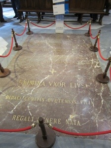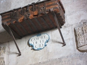 Dead center in the transcript lie El Cid and his wife. His statue is all over town along with his fellow knights who fought against the Moors when they were not feuding with each other. Fortunately, the Spanish have avoided most of tackiness that Salzburg mastered exploiting Mozart and the Von Trapps. Did enjoy the chest stuck up on a wall. That was the chest loaded with sand that the Cid passed off a collateral for the bishop to fund his fighting. He told them it was gold and made them promise to not open the chest for a year. It seems that he never did pay back the loan. I guess you can be a deadbeat and still be a hero.