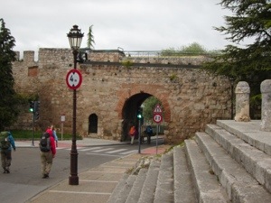 Survived the wedding party in our hotel. It was still going strong about 2AM. Didn’t make much difference to me since we both found sleep easy to come by. Got a Pelegrino breakfast at a bar, paid the bill, retrieved our bags and headed out of Burgos. Passed by the Arco de San Martin where El Cid’s Casa used to be as well as the twin obelisks dedicated to the Cid. Walked out of city through some remaining medieval walls and enjoyed a pleasant walk through El Parrel Parque. We were quite pleased that there were two designated bike lanes next to the modest Camino pathway since half of Burgos goes bike riding on Sunday. In addition to Futbal (soccer) bicycles are the other great Spanish athletic passion. Crossed the rio Arlanzan over the “Bridge of Maladies” although we are not feeling any special ailments right now.