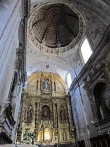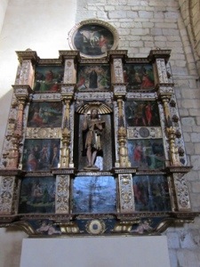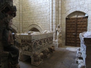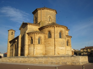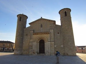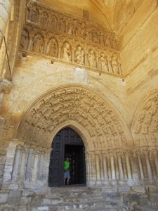 We did walk by what is considered the best Romanesque Church in Spain, Iglesis de San Martin. Very unusual double bell towers. We then hit the straight away. Passed through a couple of small towns before reaching Villalcazar de Sirga where the Templars built a fortress like church of Santa Maria la Virgen Blanca. The 13th century statue of the Virgin is on display. Reaching this point in our journey is miracle enough. Cool tombs of Castilian royalty. The church looks like a fort with strict Romanesge design on the outside with a muscular Gothic interior. Interesting combination but not surprising given its sponsors, the Knights Templar.