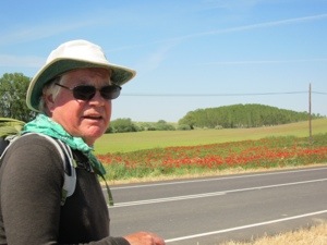 Looks like more of the same tomorrow as we return to the wheat. We will try to start early in case the promised clouds don’t make it. Talked to the French girls and they made contact with Jacque, the Sausage Guy. He saw a doctor in Burgos and got treatment for his foot and is back on the road again. Keep running into a friend of the Madagascar Samurai, he like to sing Elvis tunes. Its Now or Never is one of his favorites. Also saw the very quiet Frenchman who we stayed with at a Gite the first night in France. Very curious.
