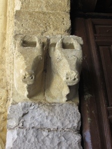 One Hundred Maidens were the annual tribute demanded by the Moorish rulers of their Christian subjects in the region of Castile. Evidently prayers worked and stampeding bulls chased the lecherous Moors out of town. The event is documented in the carvings on the Santa Maria del Camino opposite the Hostal where we are staying.