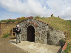 Back to our walking. Today was a piece of cake. Did notice a large number of cabs carrying people to the next town. The Mesata can be boring but the flowers and changing weather keep it interesting. On a Senda over easy ground with overcast skies and no rain. Went through the cute town of Reliegos and stopped for a ration of Limon and a packaged pastry about 11. Ran across some underground Hobbit houses that I thought were Bodegas at first until I noticed the chimneys. Crossed through the city gate into Mansilla de las Mulas by 12:30. Walked right to our Hostal.