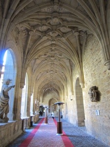 This is the background for our relief today as we left the mid-sized city of Leon this morning. We enjoyed ourselves during the visit. I need to post pictures from yesterday as we cruised around our posh diggs, the Parador San Marcos. Paradors are historic buildings that have been turned into luxury hotels to preserve them without public expense. Very similar to what is happening in the Golden Gate National Park with its Presidio properties. This Parador Leon was actually built for pilgrims as the ultimate hospice. At breakfast we discovered that we were not the only ones taking advantage of Peregrino pricing.
