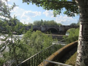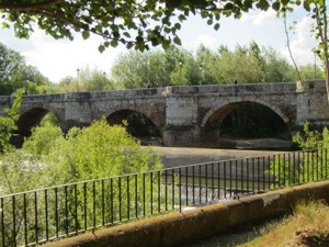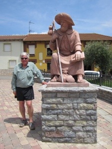 After a huge buffet breakfast with eggs, we headed out and crossed that bridge with the hordes of walking commuters heading to work from the apartment flats that encompass the city. We walked at least 6 Kms through suburbs and manufacturing areas before reaching a gravel path and leaving traffic. Some of our guidebook authors are vexed by this modernity. I am not. The Spanish are entitled to endure the modern world. They do not need to preserve the medieval way of life for us middle class pilgrims to enjoy. They actually are aggressive about maintaining their heritage much more than most American cities and governments. I just know that walking on sidewalks and through endless crosswalks is something that is limited and finite.