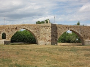 Finally found the inspiration for Monty Python and Cervantes here in Hospital del Orbigo. The magnificent Gothic era bridge is the best preserved of its sort in Spain. We reached it around 11 after having walked around 15 Kms from Vilar de Mazarife. Crossing over the bridge via the Passage of Honor or Paso Honroso. It was easier for us than many who tried to cross back in 1434.