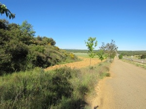Reached the crossroads town of Astorga late in the morning. It has been a crossroads since Roman times and from probably before. It lies at the western edge of the Meseta as our long sojourn across the flat plain ends. Today we climbed gently through rolling hills covered with a variety of oaks and broom. It got very warm. It will be nice to be in the mountains despite the more difficult terrain. Did spot a great use for pallets as pilgrim benches.
