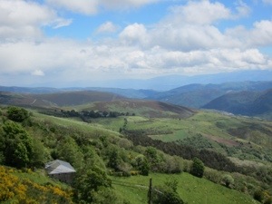 We climbed up here as part of a 15 km trip up the Valcarce River Valley. We left around 8 and traveled through green and more green for three hours before reaching the village of Laguna de Castilla after 500 meters of climbing and 12 Kms. Had a potato, onion, cheese “quiche” that took care of any hunger pangs for the rest of the day. Did the final stretch into O’Cebreiro and reached our Casa Rural above a bar and souvenir store by 1.