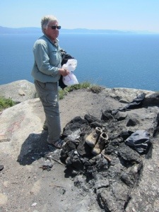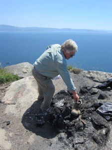 We finally reached Finesterre around 2. There is a lighthouse and some cliffs. Traditionally it is where Pilgrims burn their clothes. We chose to leave our exhausted books on a burn pile. Documented our littering with pictures. It was more emotional than we anticipated. Returned to the town of Finesterre for Paella and salad lunch. Again a nice harbor but spotted no schools of fish. Too many fish restaurants by the dock.