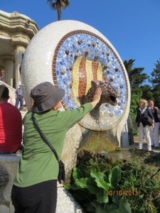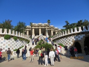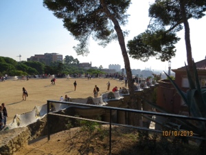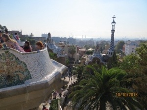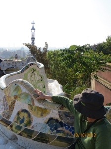 Th architecture is extraordinary. You get the sense that uniqueness is the goal. Even the modern, high rise glass cubes are in the shape of pickles and sails. The effects of Modernesme and Art Nouveau are pervasive. The imprint of Gaudi is unique. In his presence you can feel his genius. Today we visited the Parc Guell which overlooks the old city center. It was to be a Gaudi designed ideal urban housing development. The park elements were completed and you can judge for your self what the the place would have looked like if the homes were built. I still find it difficult to get away from the Dr. Seuss comparison. They must have fun comparing heavenly notes.