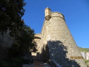 We walked into town along the Quai and climbed a ramp up to the palace and museums. We were surprised to find a couple camping rough on an overlook. I thought they would have been rousted early in the morning. The next encounter was with the nattily uniformed palace guards that protected the current Grimaldi’s. Nice cannon pictures. The artillery has not been up dated in the last two hundred years. The prince’s rely on guile and good fortune to maintain their hold on this alcove.
