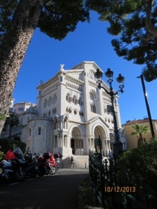 Princess Grace (AKA Grace Kelly for those who have never watched celebrity TV) lies buried close to the alter in the cathedral with many of the lesser Grimaldi’s. The cathedral is well scrubbed and pretty average. There are no drippy votive candles or flyers asking for donations. The place fits the family image.