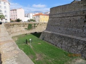 After the drive to rocky islands at the end of the bay and a brief walkabout, we returned to the city center. We then wandered by the old 17th century fortifications that are still used by the French military. The dry moat is maintained by donkeys and goats. They were on duty today and ignored us while keeping the grass short. We found the various Napoleon sites and now we know not only where he is buried but where he started.