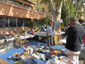 Toured a French sidewalk swap meet. Pretty much like the American kind. Many used DVDs, clothes, shoes and nicknacks were available for haggling. I pulled Peggy away before she could buy a hundred pound statue of Napoleon. Walked by the modest municipal Casino so unlike the garish one in Monte Carlo. Ventured through the old town and its produce market. So many interesting cheeses, sausages and strange condiments. Nougat is the Corsican specialty candy. Unfortunately, it is difficult to sell cruise ship people food. It is Sunday and most shops were closed so we will have to wait for Italy to find table cloths.