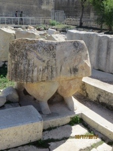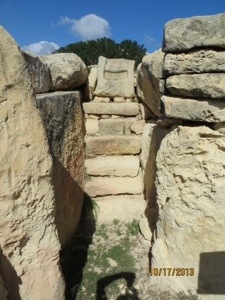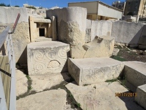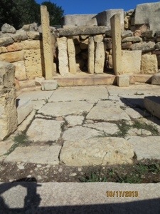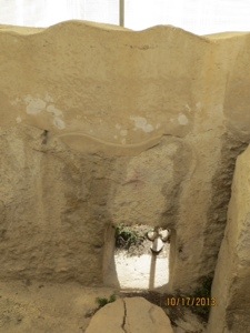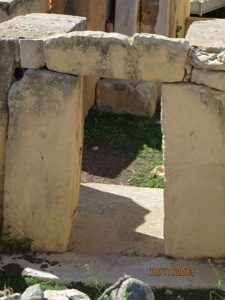 We entered the harbor earlier than scheduled. Leaped off the boat and found the tourist bus that I had planned to take. Boarded the Blue line and made our way through the impossibly narrow and crowded streets to the Tarxian Temples. These are Mesolithic structures dating back to 3600 BC or a thousand years before the pyramids. The stones may be the oldest free standing buildings in the world. We invited ourselves right in.