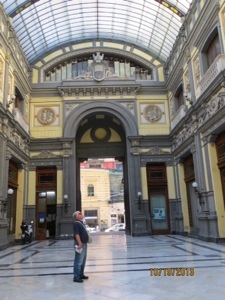We left the boat later than I wanted. It was not a good start. Walked through the subway construction near the harbor and looked at the Victorian era, glass roofed shopping center name after Humberto I. Had to be a king that followed the Victor Emmanuel’s. Have to check. We soon found ourselves in the tourist free zone of the Spanish Quarter. These streets are not for the upper classes. We kept walking waiting to be mobbed by pick pockets. Never happened. Finally reached a square with a bar and asked where we were. They could not find where we were on the map the tourist office gave us. They did point to an underground funicular and said that we should go up two stops. We reached the top and found out that we had a long way to the National Archeological Museum. Peggy got backed into by a guy in reverse. No harm no foul. The driver was very apologetic. Time to punt.