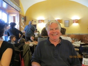 We finally left the museum after a few hours and ventured down the chaotic streets. We dove into the remaining street that was laid out by the Greeks. People and goods are everywhere in these alley wide passages between 10 story buildings on either side. Shops, colors and smells bombard you. We found it. The Neapolitans invented pizza and we found a place jammed with locals. Two cold Peroni’s and a wood fire, thin crust pizza and all of the days challenges went away. There was even a Soccer Saturday pizza party going on in the back room. I wonder who started that custom? It was three and we were somewhere in the middle of the city and far removed from the boat. The last boarding call was a four. No problem. We sauntered down the avenue like Italians. We only had to ask a friendly policeman for directions once.