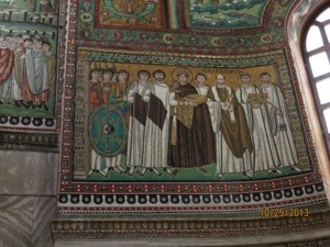 Better start with a little background and review for those with less than total recall about the early Middle Ages. Ravenna was briefly the Capitol of the western Roman Empire. In the early 5th Century Rome was in trouble. Barbarians were actually at the gates including bad guys like Attila the Hun. He was bought off but more persistent guys were right behind. It was at this time that Ravenna became the Roman headquarters. By the end of the fifth century, Ravenna was ruled by the Goths who also sacked Rome and deposed the last of the Emperors. The Dark Ages were replacing Roman civilization.