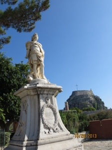 Given the history of this island it is not surprising that it goes by a number of names. This large island lies on the west coast of Greece and also has an important harbor that various invaders could not resist. Today the invaders arrive in ships and shorts. There were five or six cruise ships in port today. As we arrived on a Monday, we knew the archeological museum with the Gorgon would be closed. The cab driver told us that the entire town was closed because of a national holiday and that for 80 Euros he could take us to a palace built by a bored Habsburg Princess. We declined despite his dire warnings of our impending visit to a ghost town.