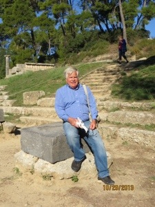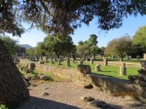 Finally made it to the Olympics. We needed to land in Katacolon (cat gut?) and then make our way inland. Leaving the ship on a tender was actually easy today as they decided to take us early risers without waiting for the girls who normally control the process.. Found the 10Euro RT bus to Olympia and we were on our way. Covered the 30-40 km to the sacred venue and were there by 9. We had plenty of company as there were a number of giant cruise ships in port and this is the only destination besides the trinket shops in port.