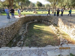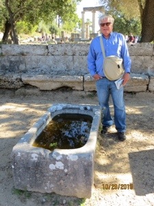 In addition to the places for competition there are places for the offices of the judges and officials. Could not find the media outlets but the five star hotel called the Leonidaion was still there as were Phideas’ workshops and the place where the athletes took their oath of fair competition. Little was missing except for fast food and beverage stands. The most complete venue was the Palaestra where guys (there were no girls) trained and took baths after sweating a while.