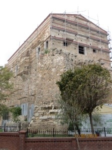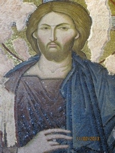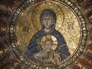 We took a cab to the old Byzantine Chora Church which today is a museum. The church lies near the remaining sections of the old city walls. The church itself was rebuilt a number of times. In the 1300’s a wealthy advisor to the Emperor of Constantinople committed funds and energy to remodeling the place. The mosaics are an essay in Byzantine Orthodox theology. Key distinctions between the Eastern and Western versions of Christian Art is that the Passion of Jesus is down played while the central importance of Mary is magnified. Scholars believe this is an adjustment to long connection with Eastern fertility goddesses. I have a neighbor who would endorse this view. The mosaics and setting were wonderful and well preserved after they were white washed when the church became a mosque. The works were rediscovered in the 1940s and the place is know a museum. The only obvious damage from Islamic use were the battered angel sculptures. White wash would not hide them.