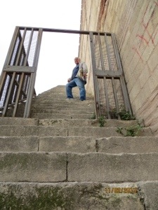That is me climbing the bannister free stairs on the old city walls. On reaching the top, I sat and let Peggy explore the railing free top which is real high above the streets below. It is real easy to see why no including the conquering Turks made it though or over these walls. The soldiers of Mehmet the Conqueror did a surprise attack on the low sea walls that line the Golden Horn.