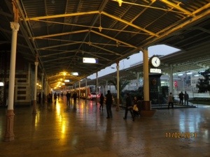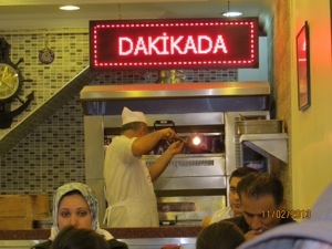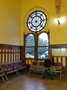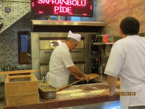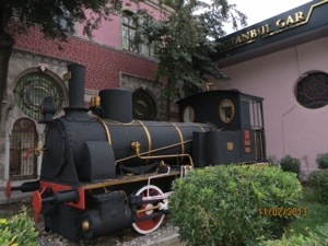 Stopped for a late lunch for a pita and cheese thing that was baked for us while we waited. Just right and the cooks posed for us. We just made it to the Orient Express Museum at the train station. It closed but we got the pictures as the lights went out. So almost ends the day. The Muezzin is crying out the evening prayer announcement. That is our cue for dinner.