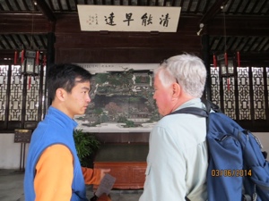 We arrived in huge city of Suzhou without incident and went to one of the restored private home and garden of a retired bureaucrat that was built a thousand years ago. It was not a palace. It was designed as a retreat from the political world. It is called the Garden of the Master of the Nets. It revealed the thinking of a Daoist from long ago. Chris patiently explain the symbolism and rationale for the design of the rooms equipped with Ming dynasty furniture. It was like having a personal guide in a great Christian cathedral.