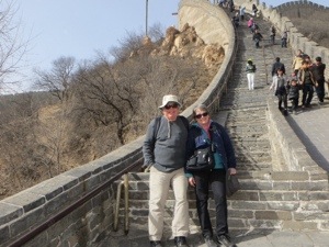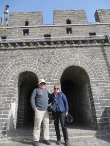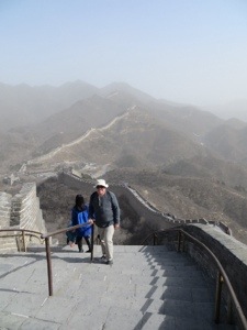 Sections of the wall date back to the Qin Dynasty with its nasty Emperor whose clay soldiers we saw a couple days ago. So they started the wall some 2200 years ago. Actually it was built on top of early earthen fortifications. The idea behind the wall was to keep out the marauding barbarians from the north. These mounted warriors loved to prey on the prosperous farming populations of China. The wall was added to by different dynasties with its culmination during the Ming who ruled China during Europe’s Age of Kings. The period represents a cultural high point in terms of sophistication and grandeur. The Wall was completed, the Forbidden City and the Ming Tombs were all built during their time. By the mid-1600s, the Manchus from the North conquered China and ruled until 1911. Since they were from the North, the wall was allowed to fall into disrepair and provide a large supply of building material for nearby residents. Sections of the wall have been restored so tourists could easily visit.