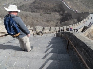 We arrived at the Great Wall before most tourists. Peter is kind of a European Rick Steves. He operates on the early or late theory of planning, mostly the early. As a result we took a group picture in relative calm before venturing out on our own. Of course, we took the more challenging wall walk.