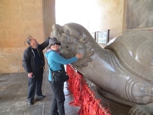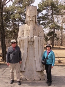 We met the Ming Emperors, or at least their tombs, on the way back to Beijing. It was a lovely walk along the funeral pathway. Thirteen Emperors are buried here. Only one tomb has been excavated. The others remain un-dug or robbed. The large stone figures all had their symbolism and purpose. It made for great picture taking. The best was rubbing the turtle rear and head to assure a long life. It was the first turtle that I have ever seen with teeth and a grin.