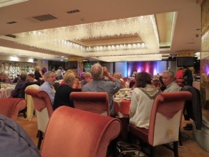 With the meal complete we rose to see a shocking sight. On table after table were piles of uneaten duck and other delights. In contrast to our clean plates, many of our fellow passengers effectively passed on the meal. We were incredulous. We should have snagged stuff off their tables. I did notice that Peter’s tables were the clean ones. Maybe it was his enthusiasm for the meal.